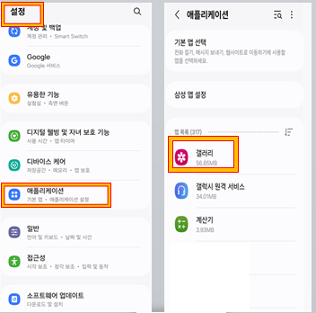'설정' - '애플리케이션' 메뉴로 들어가세요. 갤러리 등 나의 개인정보가 담긴 앱을 선택하세요.