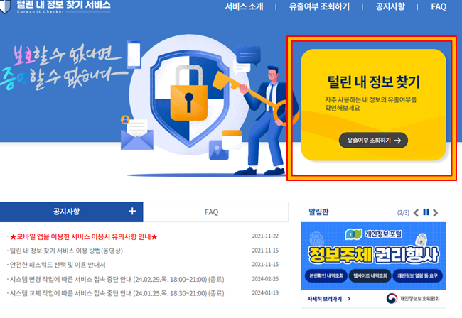 털린 내 정보 찾기 서비스
